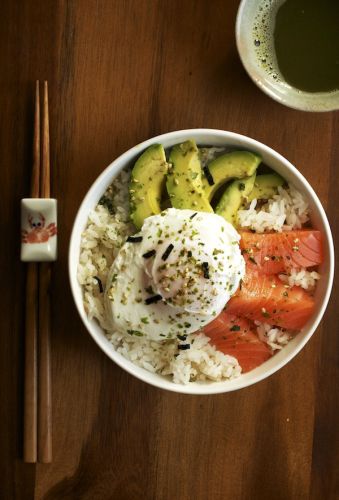 Then again...why even cook the fish? This recipe, calling for fresh salmon served raw, sashimi-style over Japanese rice with a runny poached egg has the meal situation totally under control.