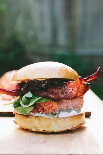 Finnish-style roasted salmon gets together with our old friend, bacon in this delicious meal idea.
