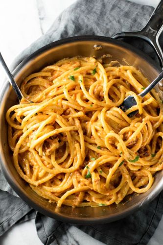 Ingredients: Bucatini + Pureed Sun-Dried Tomatoes + Heavy Cream + Butter + Parmesan