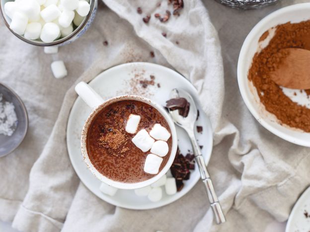 For a warm cup of sweet and tart hot chocolate, consider using oat milk instead of cow's milk. Oat milk is a great way to mellow out more acidic notes in the cherries and chocolate, all while adding new depth of flavor. This rich cup is sure to please. Here's the recipe.
