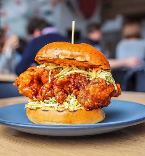 David Chang's restaurants are known for their amazing ramen and mouthwatering fried chicken—one look at this sandwich tells you exactly why. This spicy sandwich is the perfect mix of uptown and downtown.