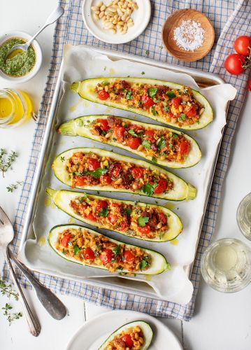 These stuffed zucchini boats are vegetarian, but they're packed with so much flavor that you won't even miss the meat. Tomatoes, herbs, pine nuts, bread and more are baked inside the tender roasted squash for a nutrient-rich dinner your family will gobble up. Try the recipe here.