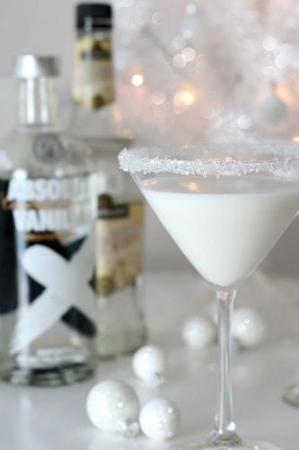 Having trouble getting into that winter feeling? This sparkly, snowy cocktail will get you in the mood, easy! With vodka, white chocolate liqueur, and creme de cacao, this is the perfect chilled drink to sip by a toasty fireplace.