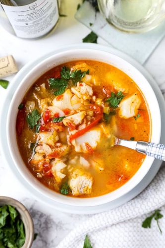 Wonderfully delicate, packed with veggies, and totally satisfying, this stew is guaranteed to improve the symptoms of even the most stubborn illnesses. Flaky fish is rich in protein and low in calories, and it will help put some of that glow back in your complexion. This recipe is made with leeks, bell peppers, tomatoes and fresh herbs that help keep this stew light and comforting all at the same time.