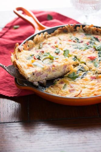 Hash browns may be an essential part of any respectable breakfast, but with this recipe, you can enjoy them right inside your frittata! Filled with ham, spinach, and other veggies, hash browns form the crust of this unconventional frittata.