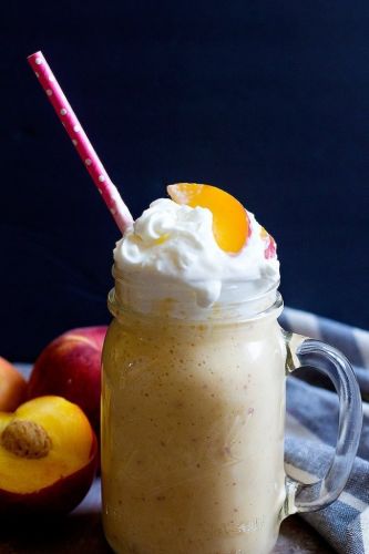 In this recipe, ice cream is replaced with frozen yogurt, which reduces the fat content of the milkshake, without sacrificing its sumptuous flavor or texture. You can use this version as a base and add whatever frozen fruit you have on hand.