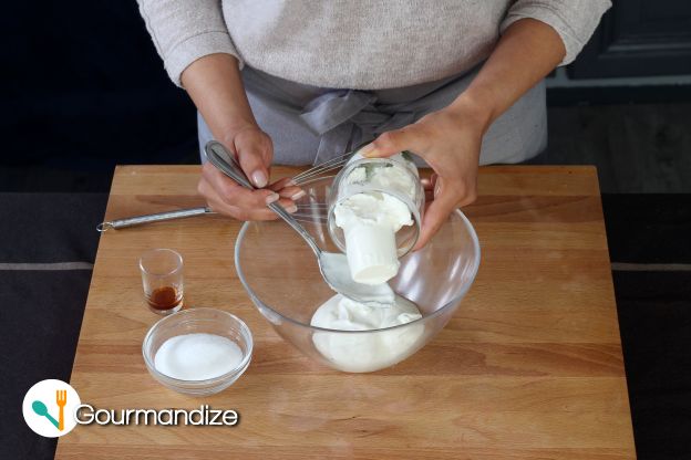 In another bowl mix the cream cheese, sour cream, sugar and vanilla extract.