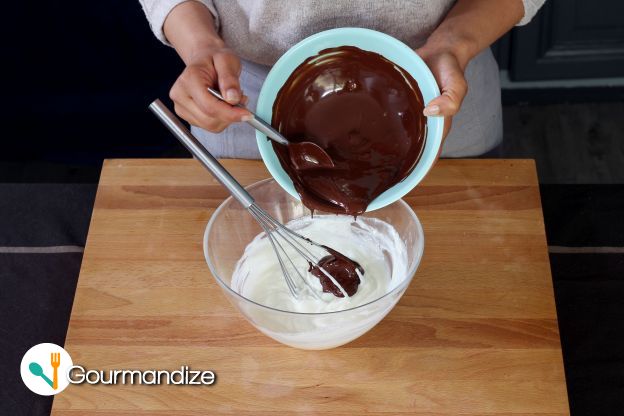 Melt the chocolate over a pan of gently simmering water (in a double boiler). When the chocolate has melted, stir it into the cream cheese mixture.