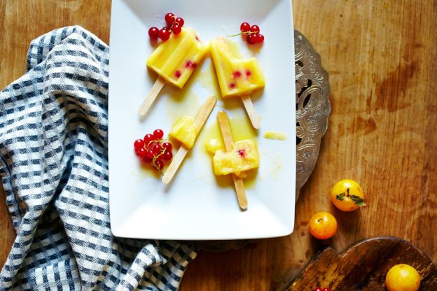 These sophisticated popsicles are made using just five ingredients. They owe their bright color to the roasted mirabelle plums, which take on a caramel-like flavor in the oven. Paired with the tart red currants, these popsicles are truly heaven-sent! Get the recipe here.