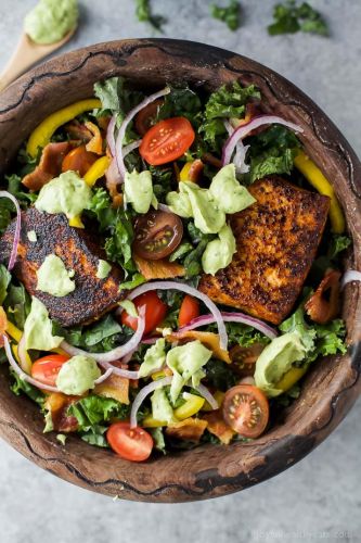 BLT Salmon Salad with Creamy Avocado Dressing