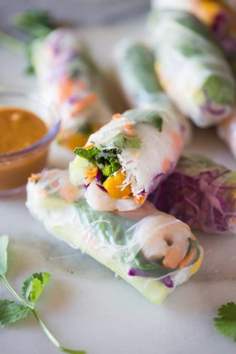 No need to call for takeout when you can easily whip up these spring rolls at home! Filled with mango, rice noodles, carrots, cucumbers, herbs, and shrimp, this dish is perfect to enjoy as temperatures soar. Get the recipe here.