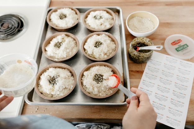 These individually portioned macaroni and cheese bowls are the perfect way to treat yourself without breaking a sweat. A mix of creamy and sharp cheeses balances the dish perfectly, and the pesto introduces a delicious flavor. Get the recipe here.