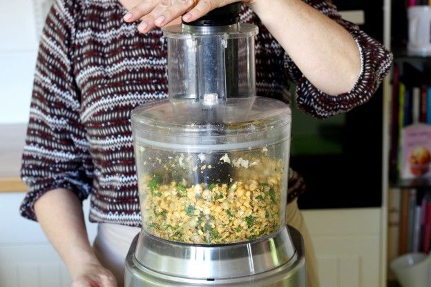 Pulse at first, then as the preparation gets smoother, let the food processor run continuously.