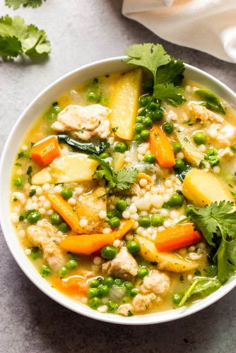 This cozy spring-themed chicken and vegetable stew cooks everything up in one pot, including the pearl couscous. Stocked with potatoes, peas, carrots and spinach, it's full of nutrients and will help you transition from winter to spring with no effort. Get the recipe here.
