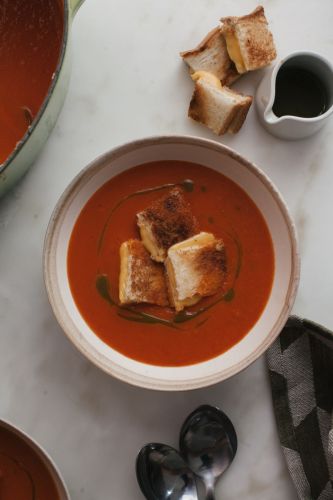 Roasted Tomato Soup with Grilled Cheese Croutons
