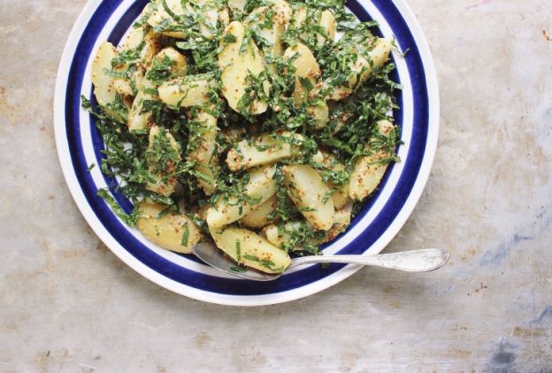 Though it might look a little basic, this recipe packs a lot of flavor! The kale is shredded for a twist on texture and gently "massaged" with salt and lemon juice to bring out its flavor. Combined with the potatoes and a grainy mustard dressing, it's delicious and definitely gets points for originality!