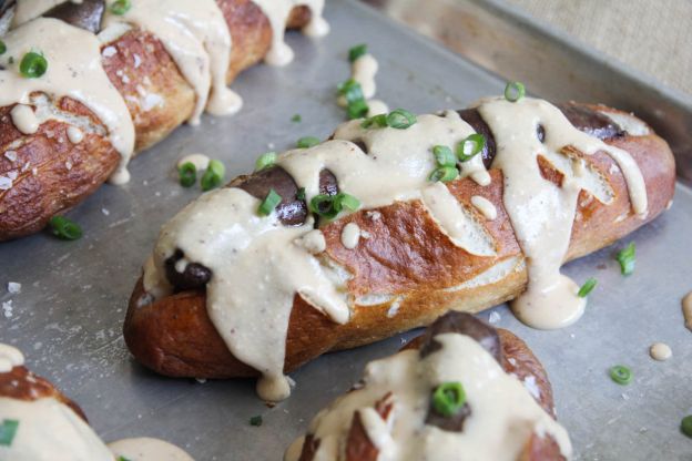 Homemade pretzel buns are worth the extra effort, and these ones turn out wonderfully fluffy. While they're baking, you can whip up an easy yet ultra flavorful beer cheese sauce made from smoked Gouda, cheddar and your favorite lager. Combined with your choice of sausage or weiner, they're the gourmet solution to your hot dog boredom. Get the recipe here.