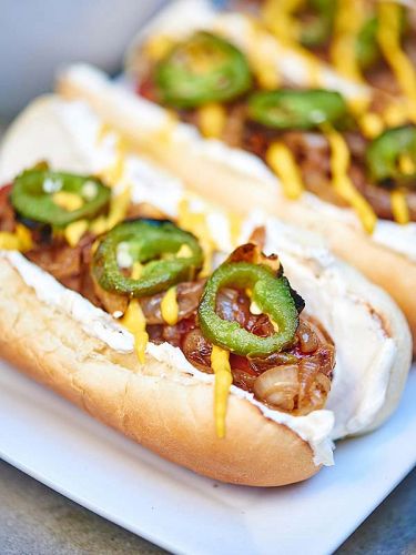 Seattle dogs are a regional specialty, popularly served from street vendors with cream cheese and sauteed onions. This recipe takes the time to let the onions caramelize, which releases their natural sweetness and finishes things off with crushed jalapeño kettle chips for a spicy crunch.