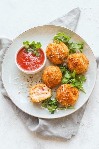 Looking for a fancy date night snack? These crab and parmesan arancini are the perfect romantic finger food. Once the creamy crab risotto is cooked, you let it cool slightly, then shape into balls and cook 'til golden brown in the air fryer. Get the recipe here.