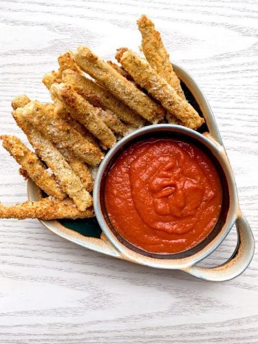 All the delicious flavors of eggplant parmesan are present in this easy air fryer recipe. Think of it as a deconstructed version, with the eggplant transformed into crispy fries, perfect for dipping into pasta sauce for a craveworthy snack.
