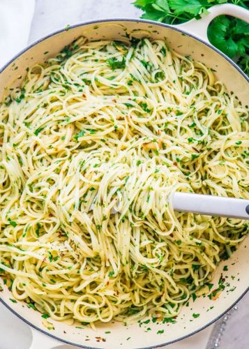 "Aglio e olio" or garlic and olive oil just might be the grown-up version of buttered noodles. A few red pepper flakes give the dish just enough heat to activate your taste buds. The whole meal only takes 15 minutes, so reward yourself with the leftover wine in the fridge. Get the recipe here.
