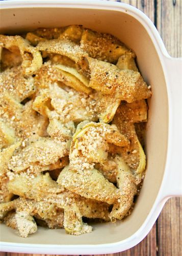 It doesn't get much easier than this recipe for baked artichokes! It calls for just a handful of ingredients and uses the canned variety for speedy preparation. Crispy, cheesy and delicious, they just might become a new favorite side for holiday dinners.