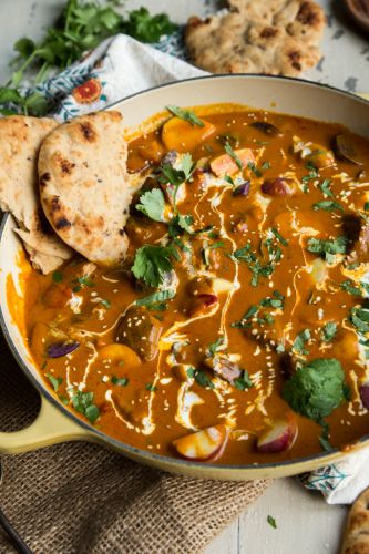 For an Indian spin on meat and potatoes, try this fragrant, beautifully spiced lamb stew with tri-color potatoes in a creamy tomato-based sauce. Garnished with fresh cilantro and heavy cream, it's the next best thing to curry when you want a cozy meal. Get the recipe here.