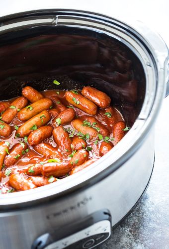 Little smokies are one of the easiest appetizers to prepare in the crockpot, and in this dump-and-cook recipe, they get infused with the best sweet, sticky, garlicky, spicy flavors. Set out some toothpicks, and serve straight out of the pot if you like!