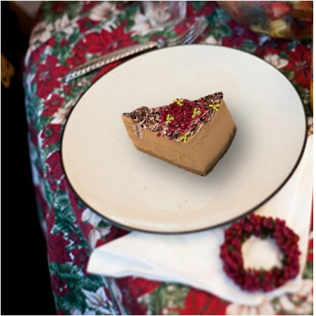 The flavors of a traditional gingerbread have been transformed into a colorful cheesecake