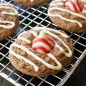 Soft hot chocolate flavored holiday cookies with a hint of peppermint and a white chocolate drizzle