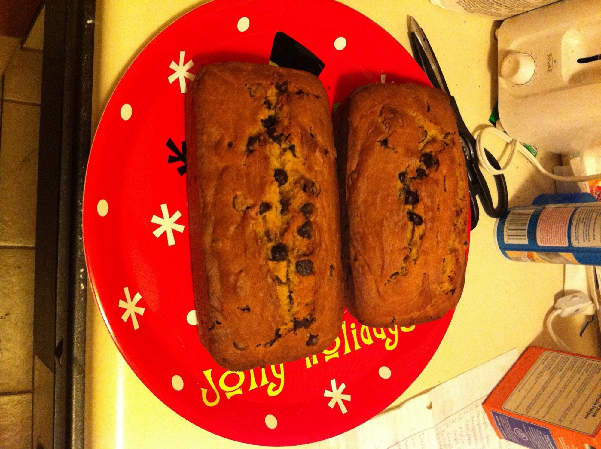 Quick and easy chocolate chip pumpkin bread for Thanksgiving
