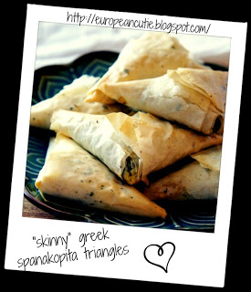 "skinny" greek spanakopita triangles