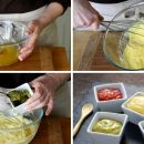 Prepare mayonnaise: Put in a bowl the egg yolk with the mustard and beat with a whisk (electric or not)