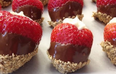 Fresh strawberries with cream cheese filling, dipped in chocolate and graham crackers!