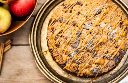 Apple Spice Streusel Cake with Salted Caramel Drizzle