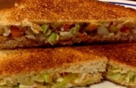Super duper easy sandwich made with all the veggies you like along with juicy-crisp green apples to add a tang to the regular sandwich.