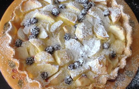 Sannois soft set apple tart with Worcesters and autumn brambles