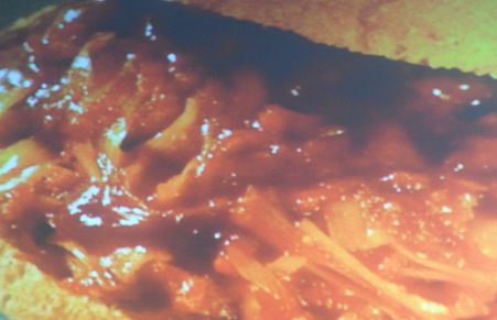 This is a sweet barbecue sandwich. It's perfect for a picnic by a lake.
