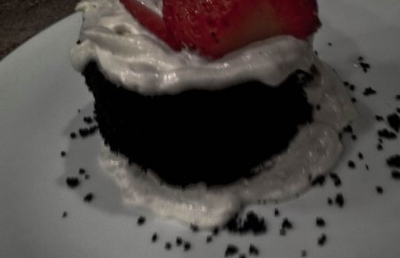 The photo is the same recipe with an oreo crust, baked into individual pies using ovenproof ramekins