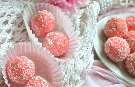 Delicious coconut balls made with condensed milk, and coconut power with the color and aroma of rose syrup