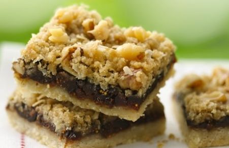 Looking for a delicious dessert? Enjoy these fig bars topped with nuts and oats.