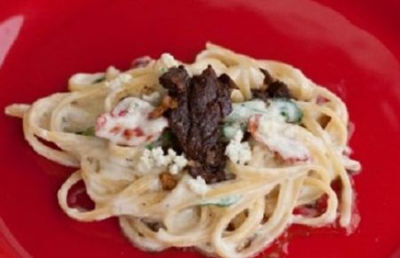 Crock Pot Braisedt Balsamic Steak with Gorgonzola Alfredo