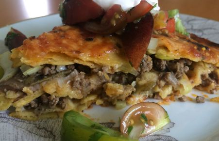 I am a huge fan of Mexican food! I am usually way to lazy to make enchiladas so I have evolved my recipe to a layered taco pie. This recipe is great topped with chipotle "sour cream" and heirloom tomato salsa!