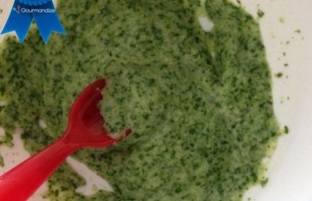 I always experiment with different things to feed my son and this is something he just loves! It's homemade brown rice cereal with spinach purée