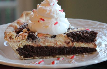 A rich brownie pie layered with a cream cheese filling and a peppermint twist. Perfect for the wintry holidays!