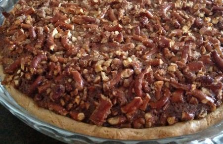 This pie came about as a result of my son having a serious allergy to nuts. I just couldn't imagine the holidays without pecan pie, so I scoured the Internet and discovered the idea of using pretzels instead of pecans from others, but made the filling as authentic as possible by playing with the ingredients until I came up with the perfect mix. This pie is better than any pecan pie you have ever tasted, and you won't even miss the nuts. The pretzels give it an addictive salty-sweet crunch that I look forward to all year!