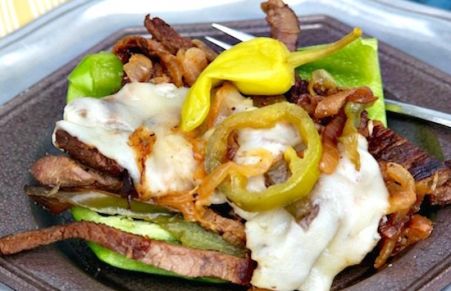 This Cheese Steak Sandwich is stuffed with thin slices of ribeye beef, caramelized onions and slices of green pepper topped with provolone cheese! Enhance the flavor with Mezzetta jalapeƱo peppers and Peperoncinis!
