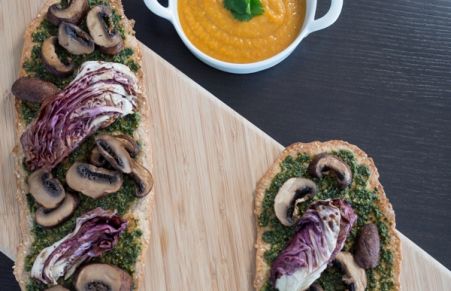 Butternut Squash Soup with Winter Pesto Flatbread