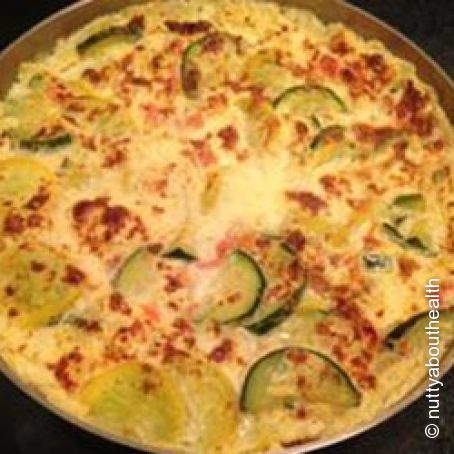 This is a healthy frittata that I made using yellow summer squash, zucchini, onion and tomato. Easy, summery, & delicious.