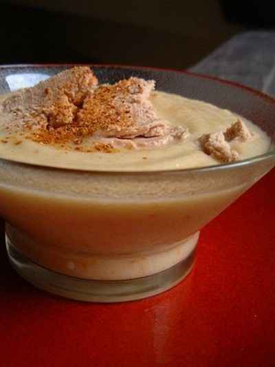 When finished cooking, place in a blender. Season with salt and Espelette pepper. Add the sour cream. Serve with foie gras shavings (for this, place the foie gras in the freezer for 15 minutes, then cut chips with a peeler). Serve immediately.